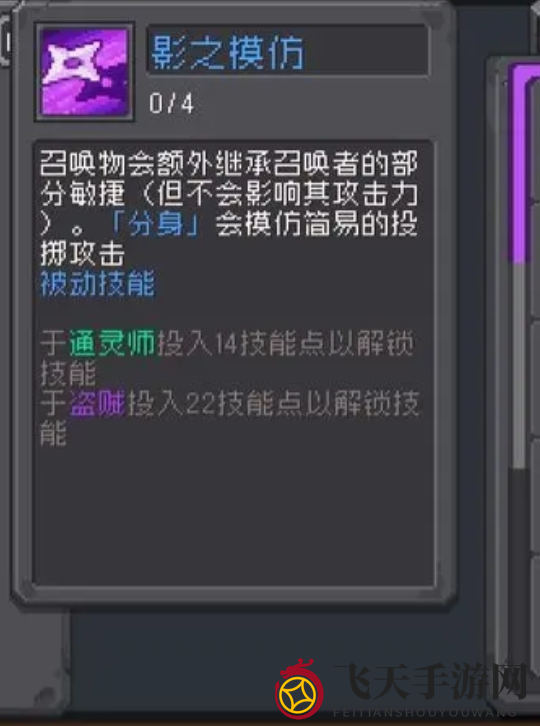 “影子模仿”使召唤物继承本体部分敏捷,提升闪避、暴击和命中能力,并让分身模仿本体的简易投掷攻击,全面加强了分身。