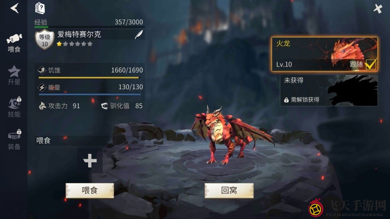龙被带出后,饥饿值会逐渐减少。若饥饿值降至0,火龙将独自外出觅食,无法与你并肩作战。你可以用普通食物喂食龙,在冒险中也能找到龙专用的食物。
