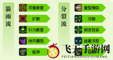 1、箭雨流派:双重新星、扩散、引力新星、疾风骤雨、轻甲。