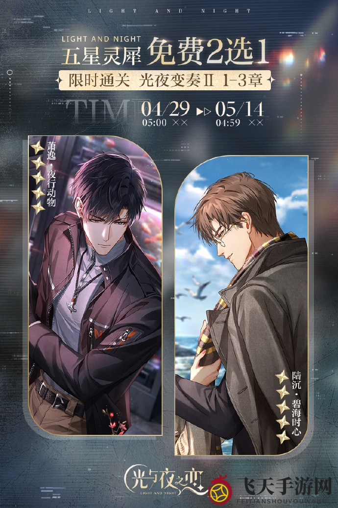 攻略详解:活动期间,完成光夜变奏Ⅱ?新生乐章第一~三章,即可领取[岁月缝隙?限时自选]五星灵犀自选礼盒,选择[5星]灵犀 萧逸?夜行动物或[5星]灵犀 陆沉?碧海时心。