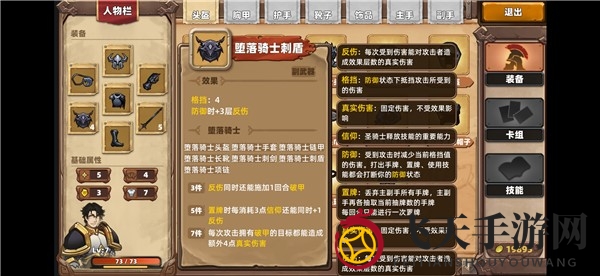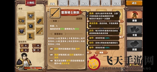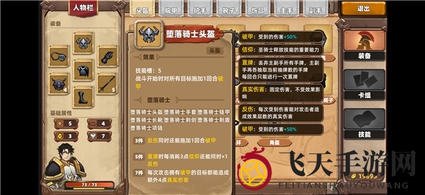 堕落骑士头盔:技能槽增加5个,战斗初始对所有目标施加一回合破甲效果。
