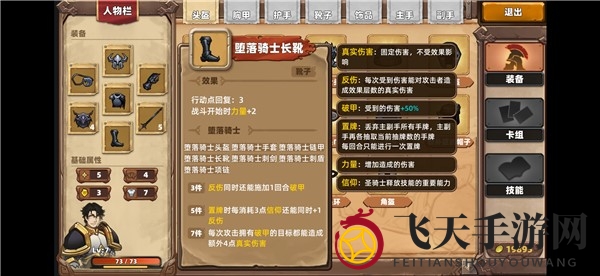 堕落骑士长靴:行动点回复增加3点,战斗伊始力量提升2点。