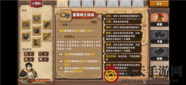 堕落骑士项链:每消耗3点信仰值摆放牌卡时,力量属性增加1点。