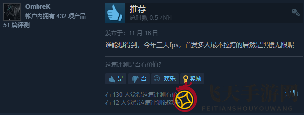 截至11月16日,《光环无限》多人游戏测试版在Steam上的好评率高达72%。