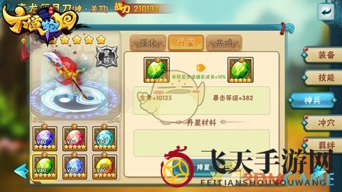 强化攻略:消耗养玉液、洗玉沙等材料,提升神兵等级,达到特定级别后,需进阶以继续强化。