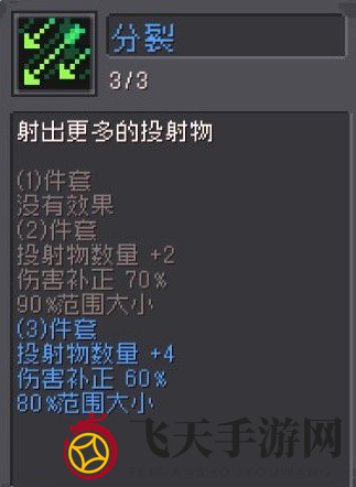 在装备选择上,我们要考虑如何最大化弹幕的伤害。测试结果显示,在无分裂的情况下,弹幕只有1条,而激活分裂羁绊后,会多出一条弹幕,因此分裂羁绊相当于多释放了一次技能,3分裂是必备的,装备可以选择美杜莎。